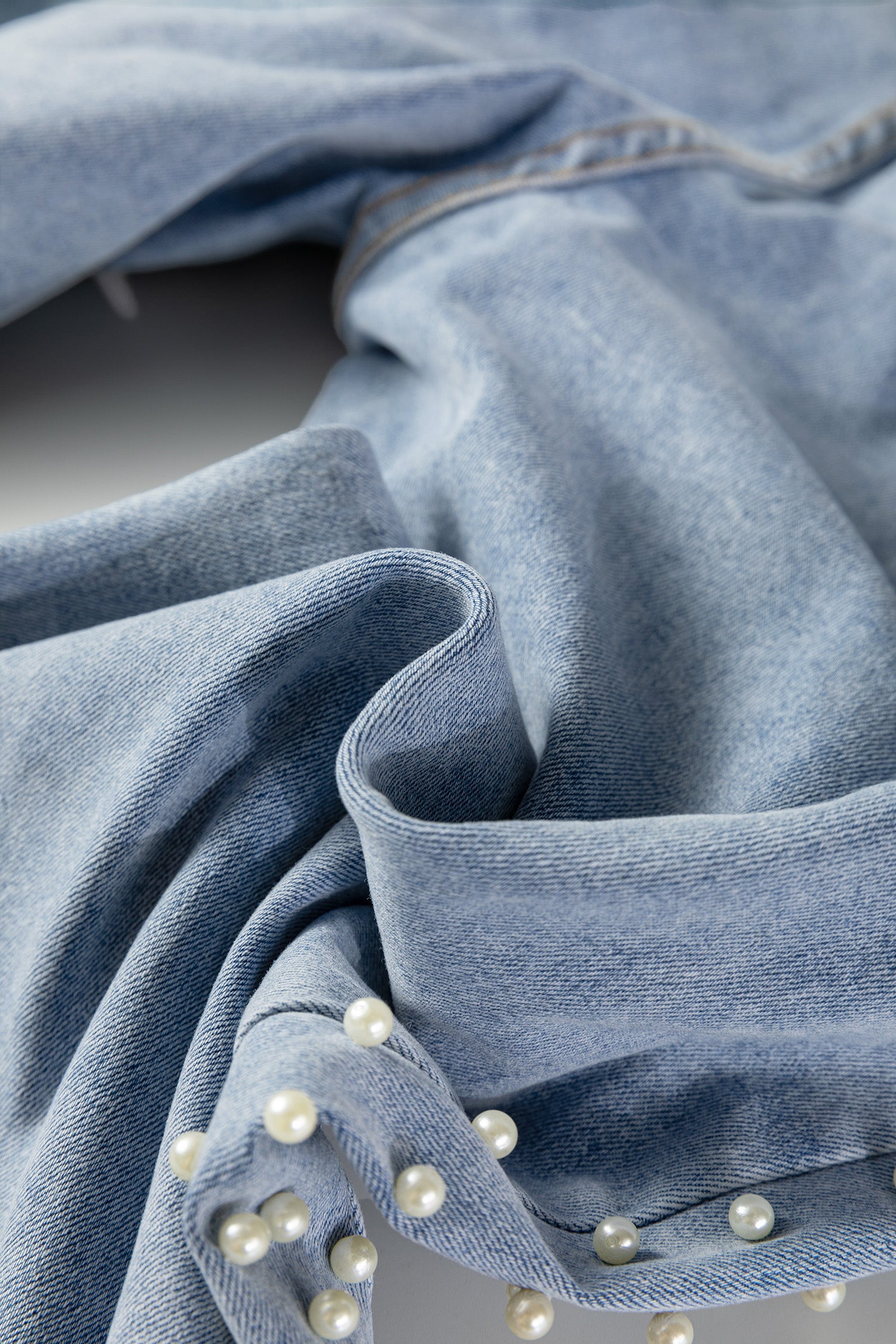 Beau Blue Mid Rise Pearl Embellished Split Wide Leg Jeans