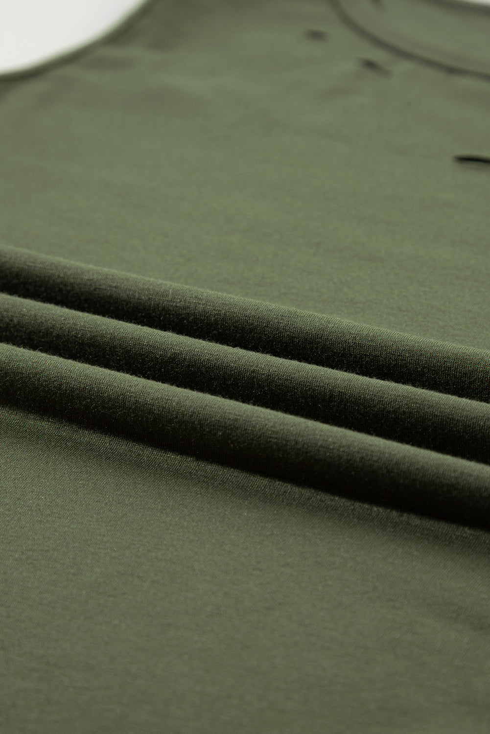 Jungle Green Solid Color Distressed Holes Crew Neck Tank Top
