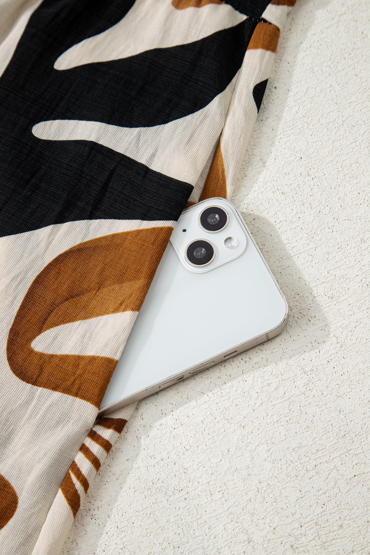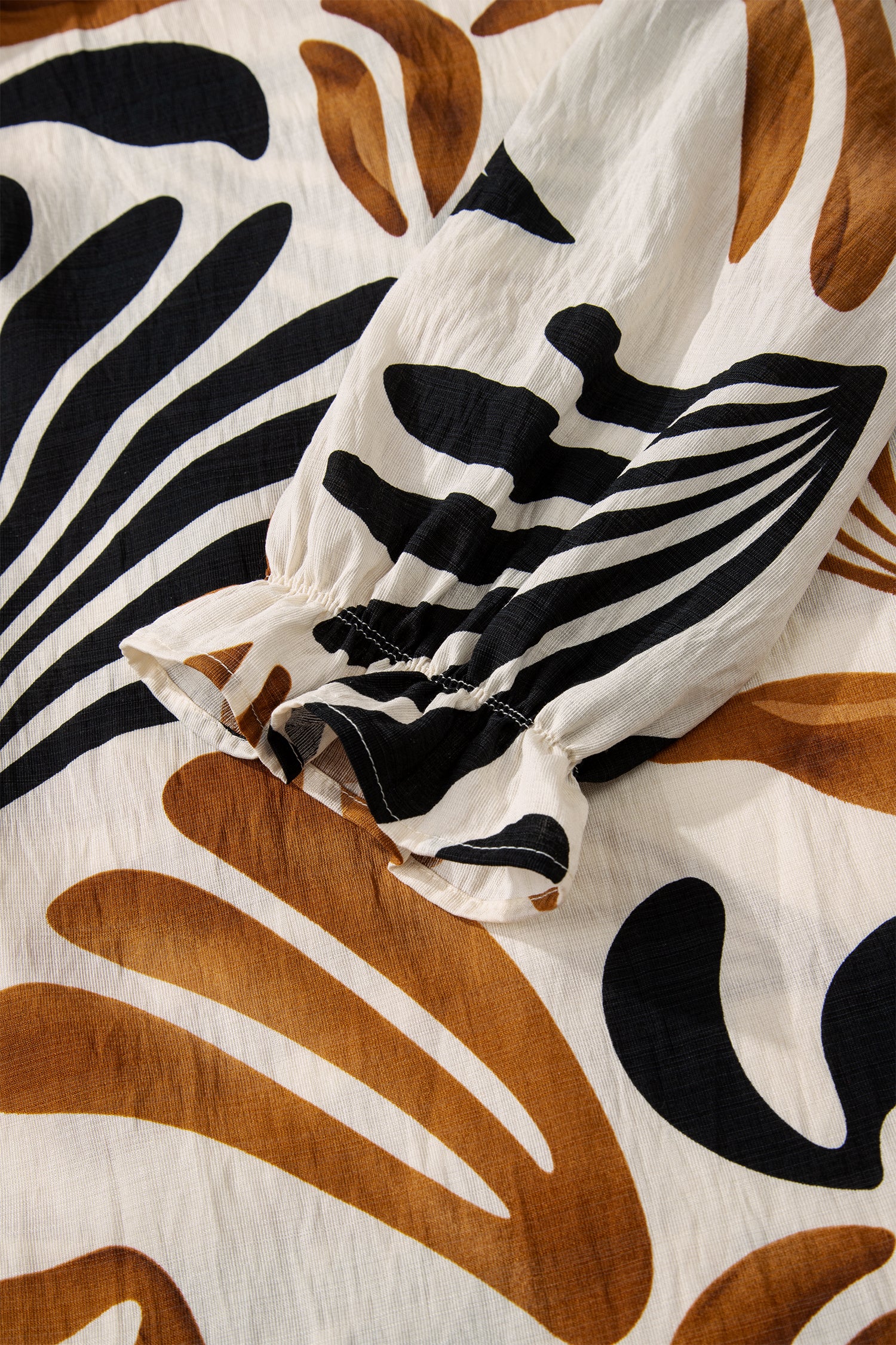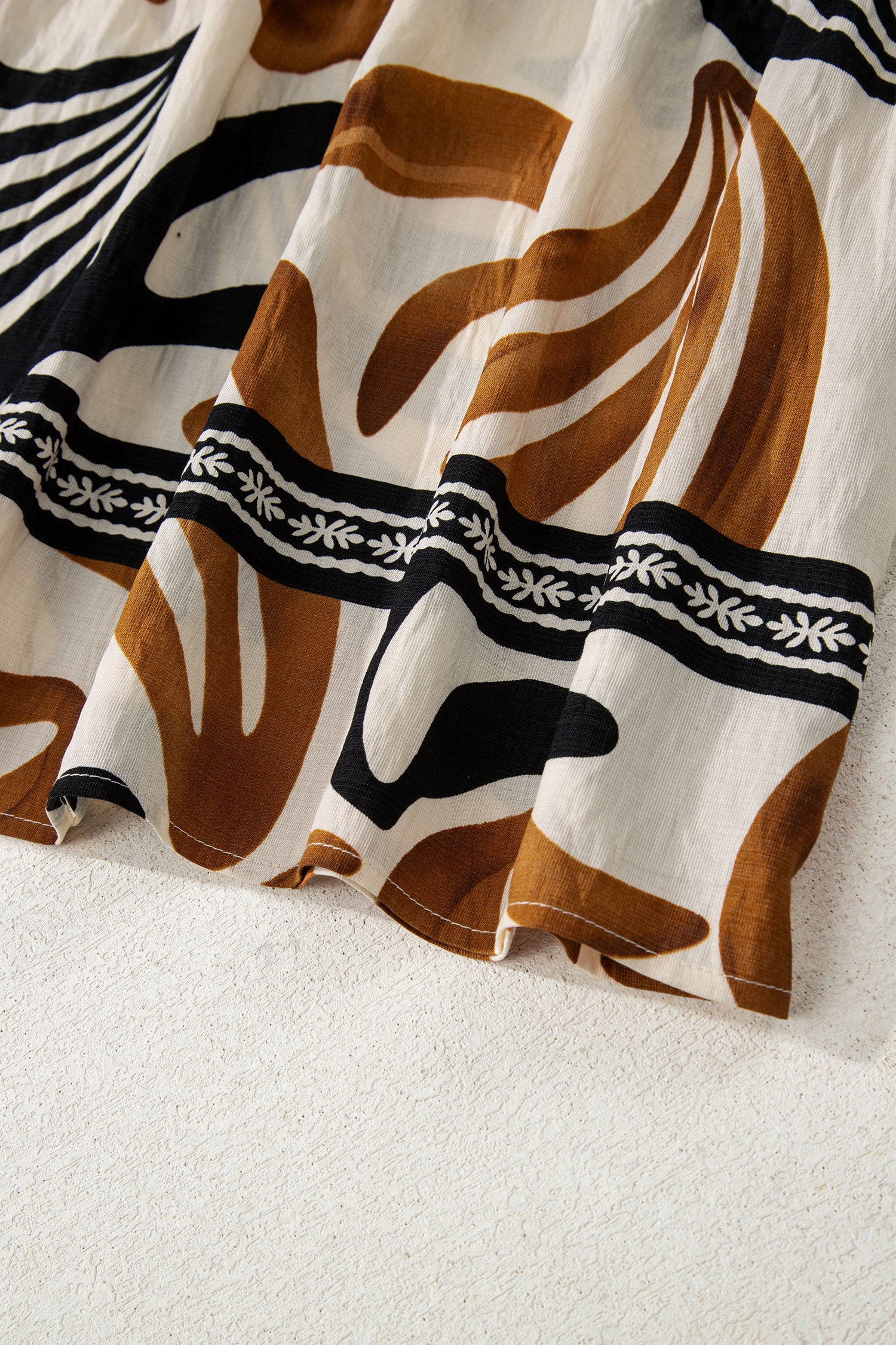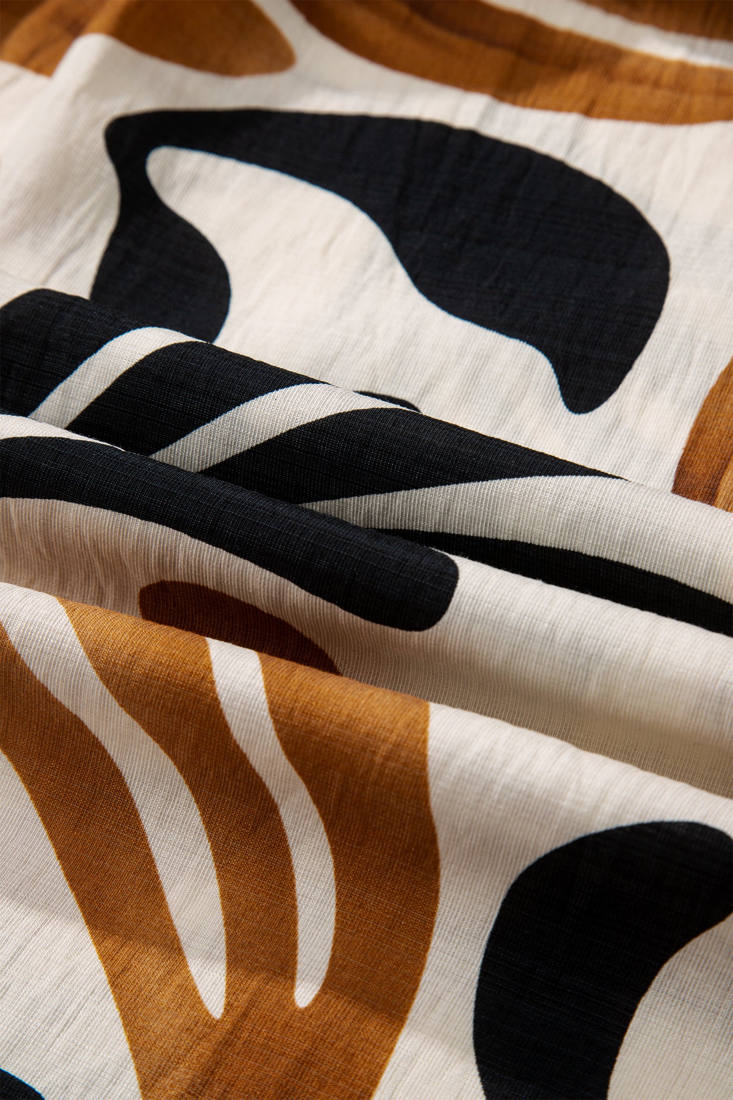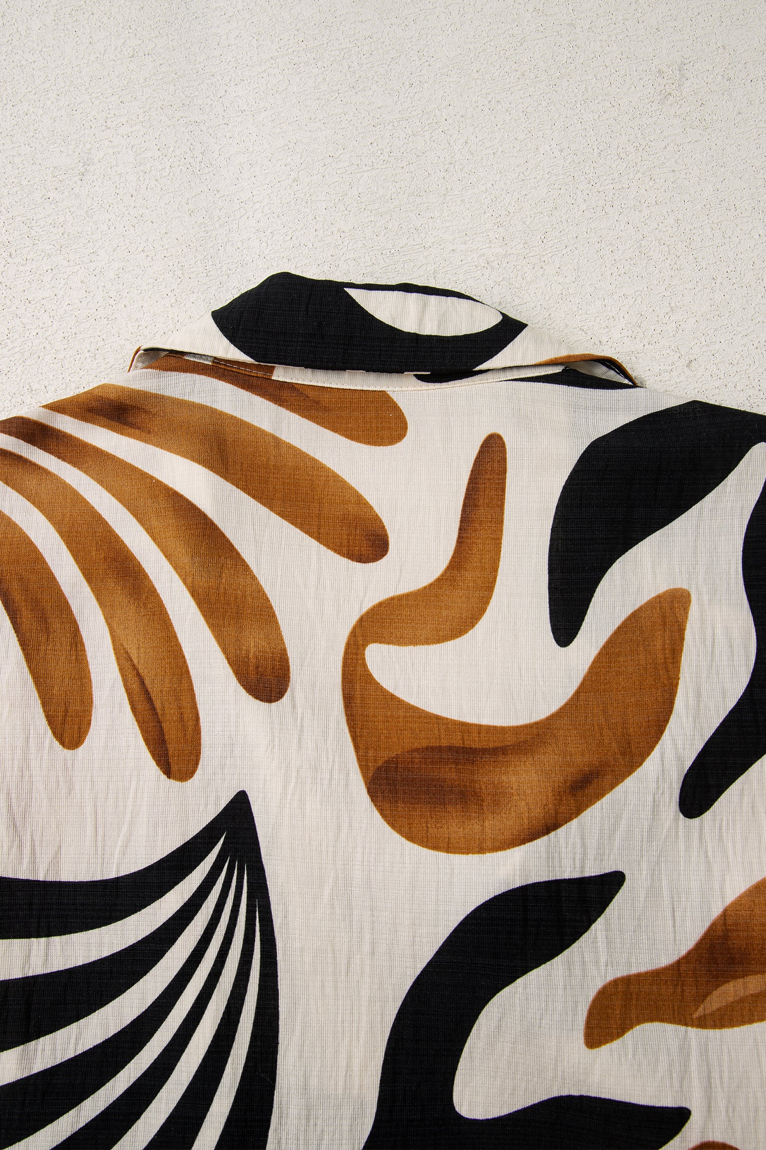 White Plus Size Abstract Print Contrast Collar Split Neck Shift Long Dress